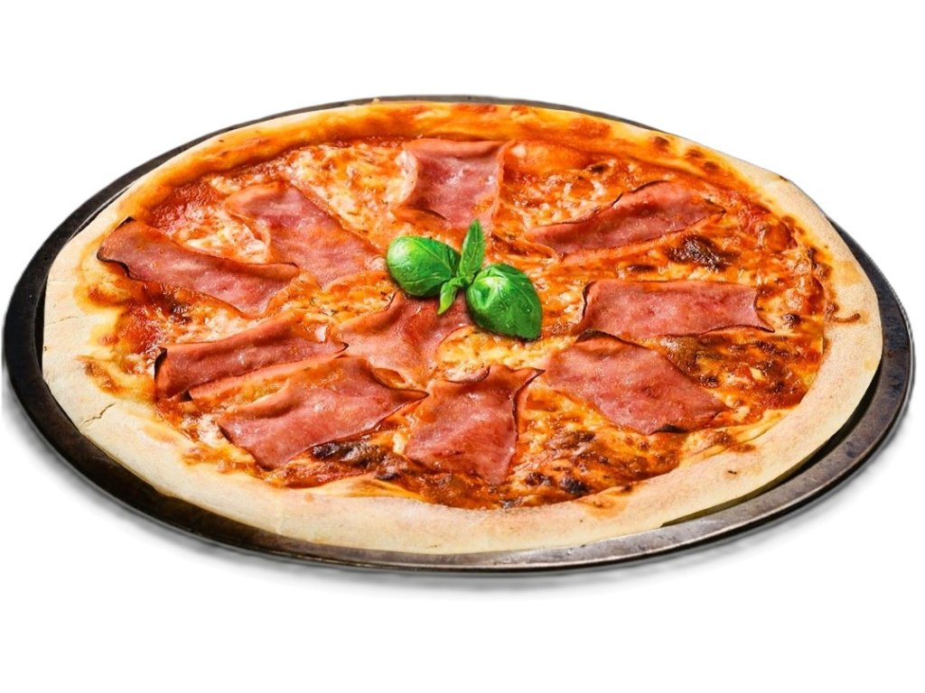 - pšeničná mouka, voda, rajčatový základ s kořením a bylinkami, česnek, sýr Eidam, sýr Mozzarella, šunka (min. 10%), extra panenský olivový olej, sůl, cukr, pekařské droždí, oregano