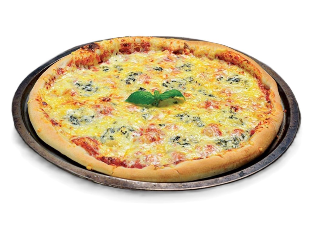 - pšeničná mouka, voda, rajčatový základ s kořením a bylinkami, česnek. Sýry (min. 30%), sýr Eidam, sýr Mozzarella, sýr s modrou plísní. Extra panenský olivový olej, sůl, cukr, pekařské droždí, oregano